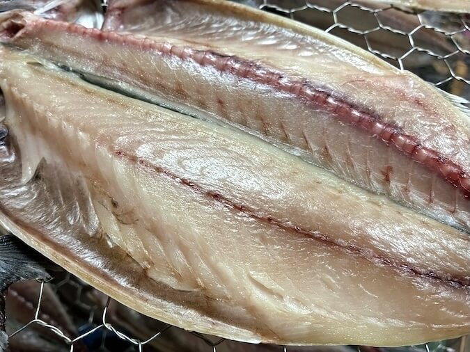 以前からのサイズと比べ更に二回りぐらい大きいサイズも。なので片身での製造とし、こちらの品は後から焼いても美味しく食べられる大骨を残したタイプに。